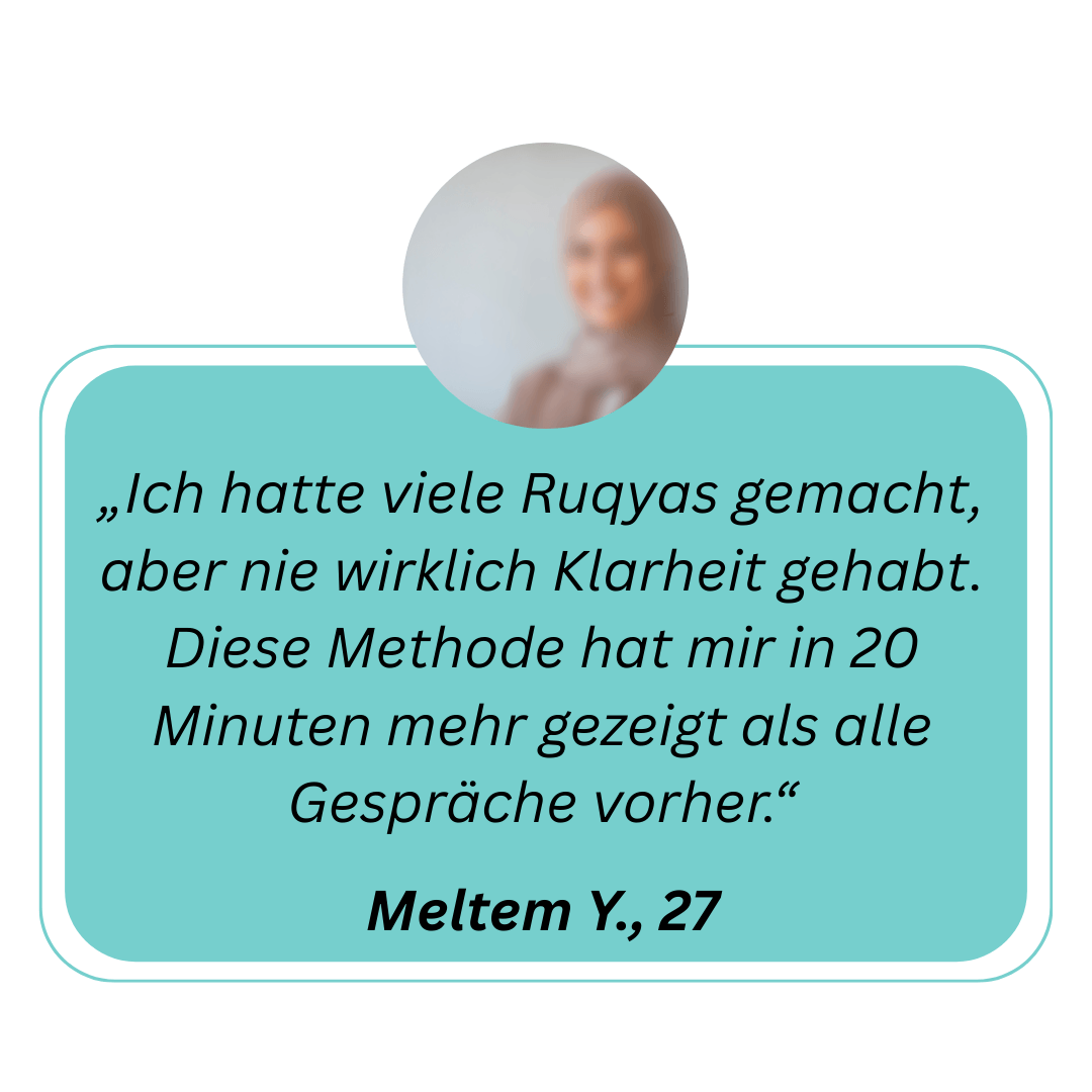 Und Du bekommst wirklich alle verborgenen Infos an die Hand, 3 genaue Schritte, wie du dich – mit Allahs Hilfe – von Fluch, Neid oder Blockaden lösen kannst